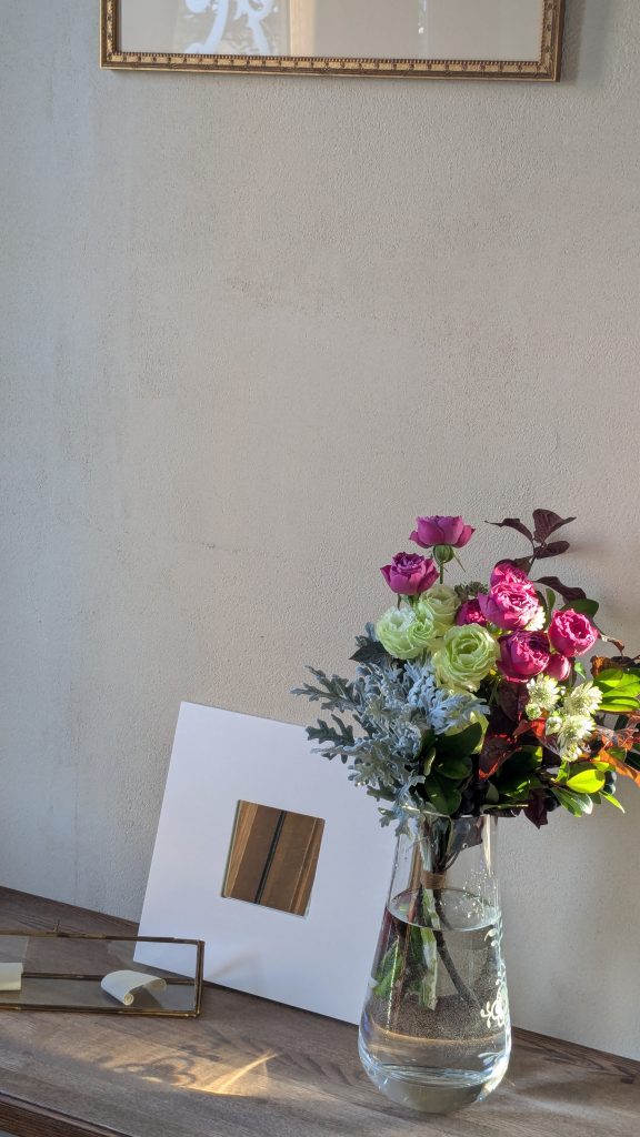 わかっていても自分で買いにいって選んでは続かないので花器に挿すだけにして届けてもらえるのは無精人には有り難い